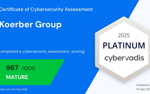 CyberVadis, ein Tochterunternehmen von EcoVadis, gehört zu den führenden Plattformen für Cybersicherheits-Bewertungen. Im Rahmen des Ratings wird insbesondere das Informationssicherheits-Managementsystem des Unternehmens bewertet. Körber unterzog sich bereits zum dritten Mal dieser umfassenden Prüfung und erhält nach zwei Gold-Medaillen in diesem Jahr erstmalig die Bestnote "Platin". Mit dem Platin-Zertifikat zeichnet CyberVadis Unternehmen aus, die eine außergewöhnliche Reife im Bereich Cybersicherheit vorweisen können. Diese Auszeichnung bestätigt den hohen Stellenwert von Cybersicherheit als fester Bestandteil des Geschäftsmodells bei Körber.