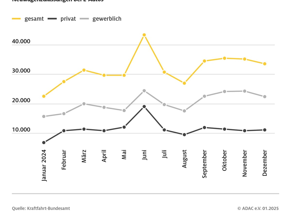 Für das aktuelle Jahr erwartet der ADAC eine Zunahme der E-Auto-Zulassungen, da der Druck auf die Hersteller durch reduzierte CO2-Flottengrenzwerte steigt. Autokäufer könnten davon durch höhere Rabatte profitieren. Entscheidend dürfte nach Ansicht des ADAC aber auch der Ausgang der Bundestagswahl Ende Februar sein. "Verlässliche politische Rahmenbedingungen sind für den Hochlauf der E-Mobilität unabdingbar," so Stefan Gerwens.
