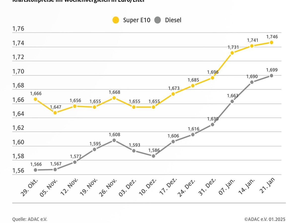 Ausführliche Informationen zum Kraftstoffmarkt und aktuelle Preise gibt es unter www.adac.de/tanken.