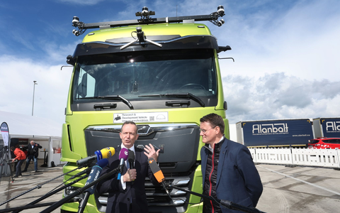 18.04.2024 - 15:38:42 | dpa.deMAN testet fahrerlose Lastwagen seit einigen Tagen auf der Autobahn. Auch Bundesverkehrsminister Volker Wissing wagte sich an Bord. Auf der A9 nördlich von München fuhr er in einem computergesteuerten Sattelschlepper von Allershausen knapp zehn Kilometer bis zur Raststätte Fürholzen-West mit und zeigte sich begeistert.