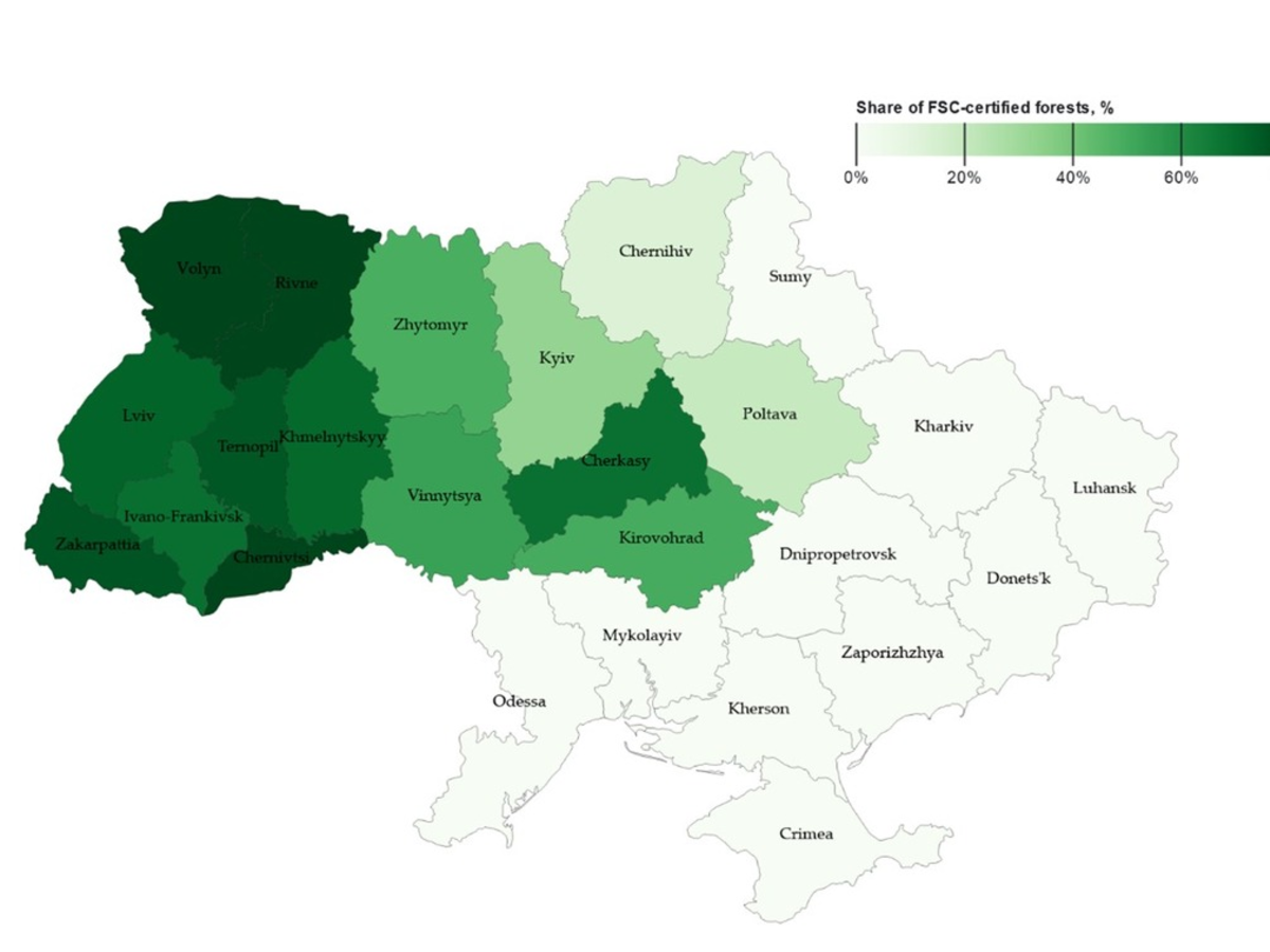 Für die meisten Deutschen, die die Auseinandersetzungen in der Ukraine vor allem über das Fernsehen und andere Nachrichtenkanäle mitbekommen, ist es kaum vorstellbar, dass in einem solchen Land weiterhin gearbeitet werden kann. Man darf jedoch nicht vergessen, dass nicht in allen Teilen des Landes gekämpft wird. Tatsächlich befindet sich der größte Teil der FSC-zertifizierten Waldflächen im Westen der Ukraine, während die meisten Kriegshandlungen bisher im Südosten des Landes stattgefunden haben (siehe Karte). Inmitten der wirtschaftlichen Herausforderungen bieten weiterhin agierende Holzverarbeitungsunternehmen in der Ukraine, Akteuren in Europa eine Möglichkeit, hochwertiges FSC-zertifiziertes Material zu importieren, gerade jetzt, da die traditionellen Quellen aus Russland und Weißrussland nicht mehr zur Verfügung stehen (die Zertifikate wurden aufgrund der Kriegshandlungen beendet, Materialien aus Russland und Belarus sind in FSC-Lieferketten verboten). Es ist darüber hinaus eine Möglichkeit, die ukrainische Wirtschaft zu unterstützen. Natalia Pokinska, Geschäftsführerin von Kronospan UA LLC, eines der größten Holzwerkstoffhersteller des Landes, sagte dazu in einem Interveiw mit FSC International: "Aktuell ist die FSC-Zertifizierung nicht nur wichtig, sondern auch unerlässlich, um die ukrainische Wirtschaft zu unterstützen und Arbeitsplätze für diejenigen zu schaffen, die nicht abgewandert sind und für diejenigen, die umgesiedelt wurden. Holzverarbeitende Betriebe und Möbelfabriken haben ihre lokalen Absatzmärkte fast verloren. Es ist daher dringend notwendig, neue Kunden im Ausland zu finden."
