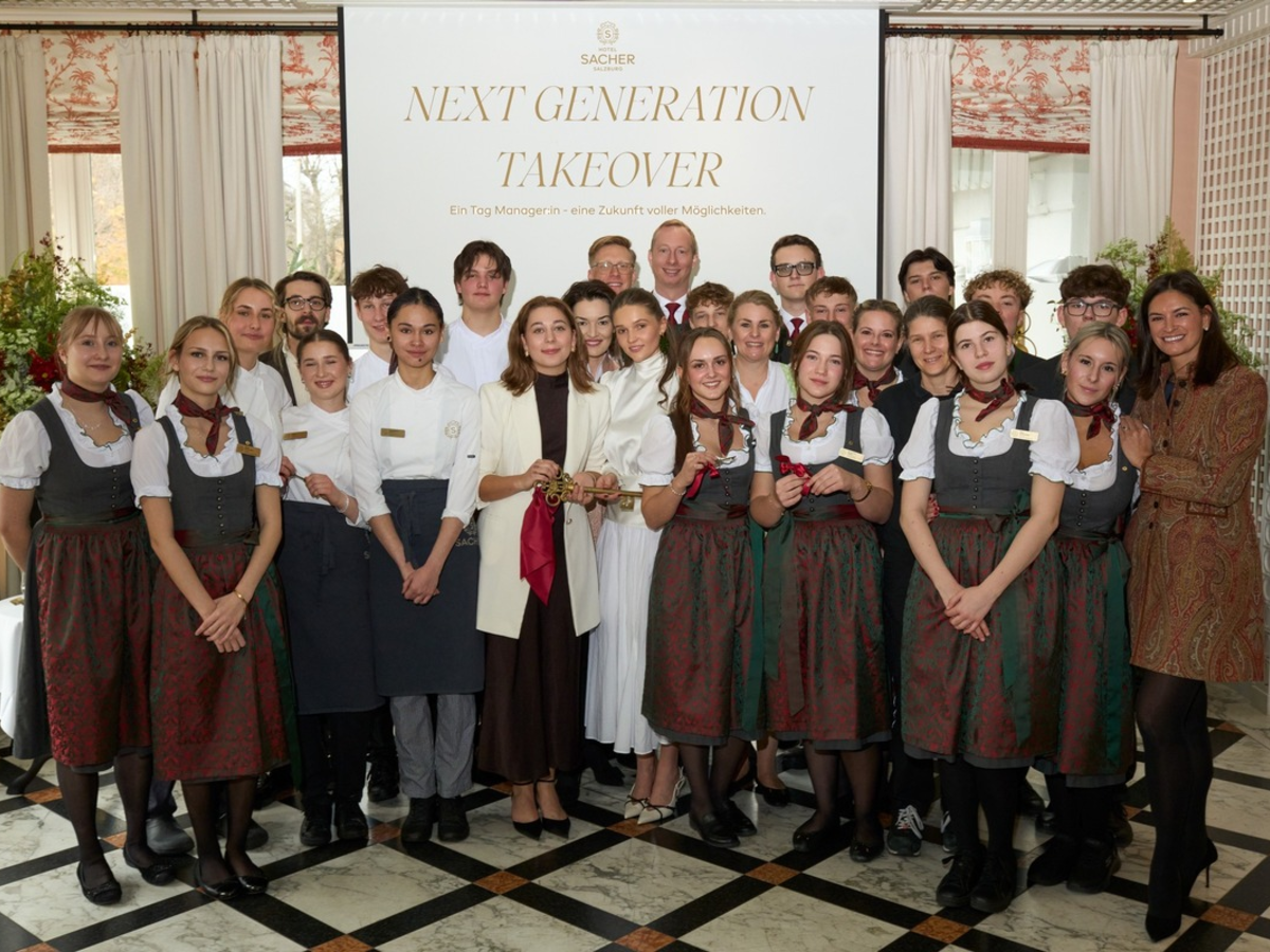 Am 15. November 2025 stand das Hotel Sacher Salzburg ganz im Zeichen der nächsten Generation. Für einen ganzen Tag übernahmen 19 Lehrlinge das traditionsreiche und familiengeführte 5-Sterne-Superior Hotel Sacher Salzburg und leiteten eigenständig alle operativen Abteilungen, von der Hoteldirektion bis zur Küche. Mit Begeisterung, Eigenverantwortung und echter Sacher-Gastfreundschaft zeigten sie, wie spannend und verantwortungsvoll eine Lehre im Tourismus sein kann. Dieses Vorzeigeprojekt ist ein klares Zeichen für Vertrauen und Wertschätzung. Zugleich ermöglichte der Perspektivenwechsel Sacher wertvolle Einblicke und direktes Feedback der Lehrlinge, die zur Weiterentwicklung des Hotels beitragen.