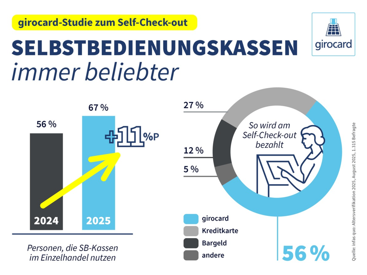 Selbst scannen, einpacken und bezahlen: Immer mehr Menschen nutzen Selbstbedienungskassen / Aktuelle girocard-Studie zu Self-Check-out