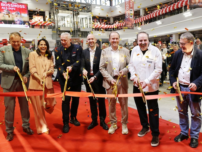 Zusammen mit Rangsdorfs Bürgermeister Klaus Rocher durchtrennte Alois Kobler unter dem Applaus der geladenen Gäste das symbolträchtige rote Band, ehe es für alle Premieren-Gäste bei dem "Pre-Shopping Event" über den Roten Teppich ging und sich das neue Einrichtungshaus als große Eventfläche präsentierte: Akustik-Livemusik von The BossHoss, Kochshows der hoch dekorierten TV-Köche Alexander Herrmann und Johann Lafer an verschiedenen Stationen im Möbelhaus, dazu DJ-Acts, Artistenshows, Gin-Tastings und eine Vielzahl weiterer Attraktionen verwandelten den neuen XXXLutz für einen Abend in eine Erlebnisbühne im XXXL-Format.