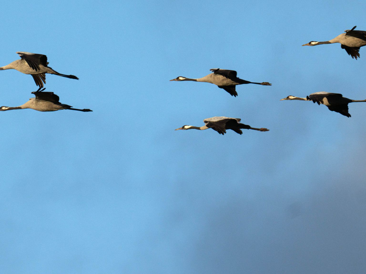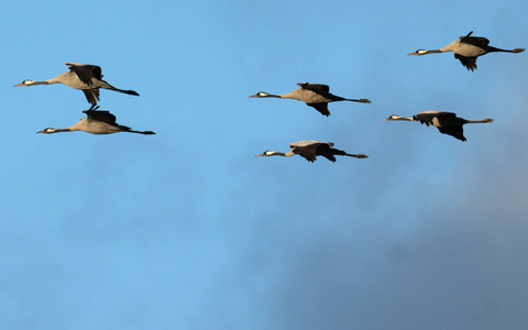 Bisher ausharrende Kraniche entfliehen der Kälte