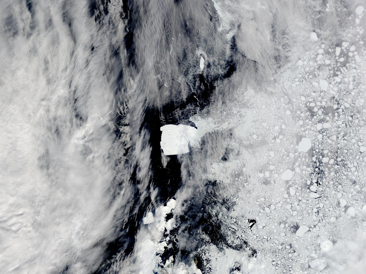 A23a hatte sich 1986 vom Filchner-Ronne-Schelfeis in der Antarktis gelöst, hing aber noch jahrelang am Meeresboden fest. Nach dem Loslösen im Jahr 2000 blieb er in zirkulierenden Meeresströmungen gefangen. Doch nun ist er entkommen, wie auf Satellitenaufnahmen zu sehen ist.