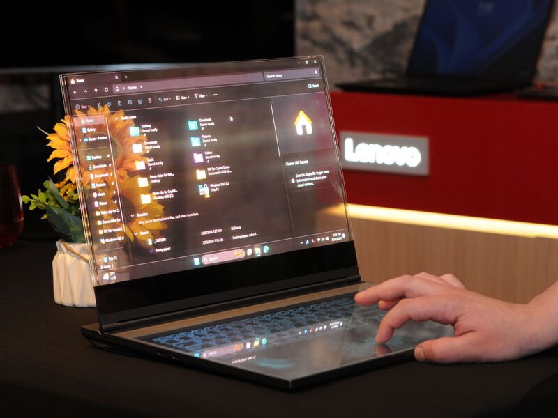 2024 hatte Lenovo einen Laptop mit durchsichtigem Bildschirm vorgestellt. Der sollte Kreativen helfen, die mit einem Stift etwa ein Objekt hinter dem Bildschirm sehen und dies abzeichnen können. Außerdem sollte der transparente Screen ermöglichen, dass sich ein Verkäufer und der vor ihm sitzende Kunde ohne Sichtblockade sehen können.