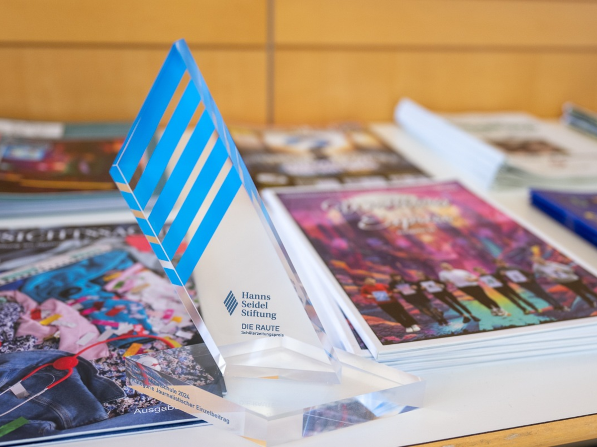 Der renommierte Preis DIE RAUTE wird seit 2010 an Schülerzeitungsredaktionen der Schularten Mittelschule, Realschule, Gymnasium, Förderschule und Berufliche Schulen sowie als Sonderpreis verliehen und dient der Förderung des journalistischen Nachwuchses. Honoriert werden die besten Leistungen pro Schulart in den drei Kategorien "Journalistischer Einzelbeitrag", "Kreativität und Gestaltung" sowie "Informationsvielfalt". Zudem gibt es einen Sonderpreis Online. Die Hanns-Seidel-Stiftung möchte alle Schülerzeitungsmacherinnen und -macher dazu motivieren, auch in diesem Schuljahr wieder Zeitungen mit starkem Inhalt und modernem Layout zu veröffentlichen und bis Schuljahresende einzureichen. DIE RAUTE wird für das aktuelle Schuljahr 2024/2025 erneut ausgeschrieben.